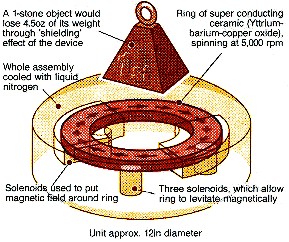 Anti-gravity is the idea of creating a place or object that is free from the force of gravity. It does not refer to countering the gravitational force by an opposing force of a different nature, as a helium balloon does; instead, anti-gravity requires that the fundamental causes of the force of gravity be made either not present or not applicable to the place or object through some kind of technological intervention. In the first mathematically accurate description of gravity, Newton's law of universal gravitation, gravity was an external force transmitted by unknown means. However in the early part of the 20th century Newton's model was replaced by the more general and complete description known as general relativity. In general relativity, gravity is not a force in the traditional sense of the word, but the result of the geometry of space itself. These geometrical solutions always cause attractive "forces". Conservation Laws If any form of gravity manipulation is to be discovered it must not violate basic conservation laws. For this reason, ideas of gravity shielding are proven impossible, since placing the machine under one end of a large balanced wheel would cause the wheel to begin spinning due to the reduction in weight on one side. True gravity shielding would work with any size weight, so one could simply build an enormous flywheel and by shielding the gravity on one side cause the wheel to begin spinning thus releasing an enormous amount of power, far in excess of the required to power the gravity shielding device. This is another example of an unworkable device, and thus conservation laws prove gravity shielding unfeasible and wrong. In order for anti-gravity to work without violating conservation laws it must apply uniformly across an entire body, and cannot be a localized space-time trasformation. The idea of warp drives are feasible, it's all about finding way to open a wormhole in front of your craft. Propulsion Technologies The term anti-gravity is also sometimes used to refer to hypothetical reactionless propulsion drives such as Biefeld Brown Effect Lifters and Beam Propulsion technologies like EMDrive.com and Microwave Phase Conjugators. Although these do oppose gravity, they cannot be consider true anti-gravity machines. The Need for New Physics Einstein's derivations explain gravity, yet they do not coincide with the laws of Quantum Mechanics. Both theories are incomplete, and the hunt is on for a Unified Field Theory of physics. High Energy Physics Most of mainsream physics is convinced that the answer will be found at extremely high energies. This is the reason for building the Large Hadron Collider (LHC) at CERN, which is the world's biggest particle accelerator. The picture on the left is of ATLAS, which is a huge array of various particle detectors. The idea is to accelerate 2 protons, in opposite directions. Get them going so fast that their Kinetic Energy is equal to two Titanics crashing at full cruising speed. All that energy is concentrated onto a single point as the two protons are made to collide inside of this giant room full of detectors.Low Energy Physics However some scientists believe that the answer lies in low energy cryogenic systems such as Superconductors and Superfluids, Bose-Einstein Condensates, Cassimir Effect, Zero Point Energy, and Cold Fusion. While MIT tries to mimic fusion reactions in the sun by recreating increadibly hot and dense conditions with the Tokamak, James Patterson and other Cold Fusion researchers, including the US NAVY (SPAWAR) have reported positive results using 50 nm Palladium black as a catalist for Deuterium Oxide being stimulated at 14 kHz by an Infra-Red pre-heater. Podkletnov's Gravitational Anomaly