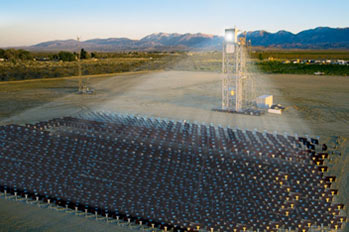 The mirrors are usually focused on a boiler aparatus covered in a highly absorbant material. The boiler heats up producing steam which is then use to power anything you want to attach, such as a turbine, etc. Wind Power:US Wind energy resources could in principle power more than 200% of our US electric power grid. Denmark currently gets over 20% of their electric power from Wind energy. Careful site selection and new turbine technologies are making wind competitive with Coal fired generation when the cost of Cap and Trade for CO2 emissions is considered. Coupled with grid energy storage like "pumped hydro power" or CAES (Compressed Air Energy Storage) Gas Turbine Power Plants, wind can be made to be "dispatchable". Smart Grid technology will also make it easier to put intermittent generators like solar and wind onto the grid, reducing the costs for new transmission lines.